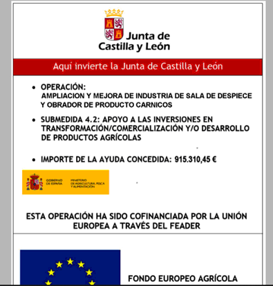OPERACIÓN: AMPLIACIÓN Y MEJORA DE INDUSTRIA DE SALA DE DESPIECE Y OBRADOR DE PRODUCTOS CÁRNICOS